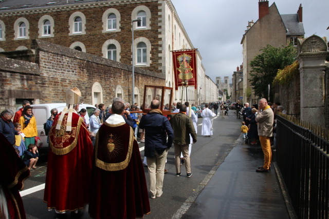 Ce week-end a été riche en rencontres et en échanges. Discussions avec les musiciens, marche de Pont St Martin à la Basilique avec les Haltes Pèlerines, etc. Parmi les rencontres particulièrement touchantes pour les bénévoles : un cycliste de Saint-Nazaire, rencontré lors de l’évangélisation de rue, a été invité à la procession du dimanche matin, il a fait le déplacement malgré la distance, ou encore, un monsieur marocain venu aider son fils étudiant à Nantes, a profité de l’occasion pour découvrir la basilique et échanger sur les similitudes entre les religions musulmane et catholique. Ce moment de dialogue a renforcé son espérance en des jours meilleurs. L’accueil chaleureux par Monseigneur Percerou ont procuré beaucoup de joie, de paix, de partage et d’espérance.