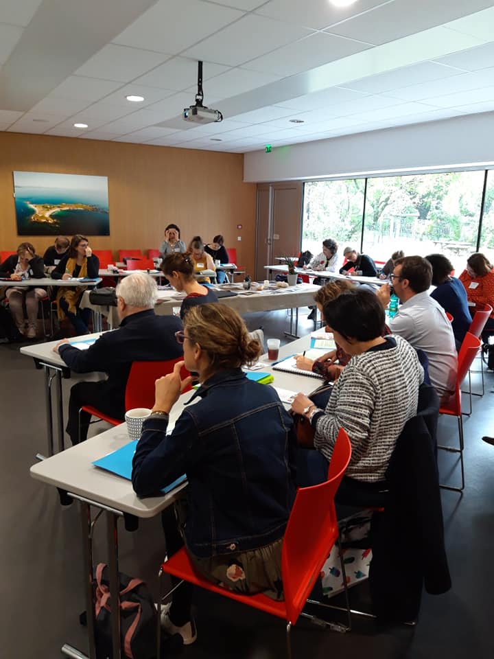 28 personnes (19 leme et 9 APS) ayant débuté leur mission en 2018 et 2019 ont répondu présentes à l’invitation du Service Diocésain de Pastorale Catéchétique (SDPC) le 11 octobre 2019. Préparée avec le service pastoral de la DDEC cette journée avait pour objectifs de s’approprier les orientations nationales et diocésaines sur la catéchèse, de découvrir et mieux comprendre les missions spécifiques aux leme et APS et leurs points de rencontre. La journée a donné l’occasion de vivre une véritable catéchèse offrant des expériences variées à vivre. Après un temps de présentation déployé, la matinée a permis à chacun de s’interroger sur la manière dont il s’organise dans sa mission, de découvrir le vaste réseau dans lequel il est inséré qu’il soit nommé en paroisse, en aumônerie ou en établissement scolaire. La fin de la matinée invitait à mieux comprendre d’où vient cette mission : en catéchèse on ne part pas de rien. Des textes fondateurs des papes et des évêques indiquent les grandes directions prises, et les Services diocésains sont là pour soutenir leur mise en œuvre locale. Une plongée dans les Orientations diocésaines donnait le fil conducteur de l’après-midi. Les participants ont été amenés à mieux comprendre en quoi la catéchèse, vécue dans la communauté chrétienne, ouvre au mystère du Christ, en s’enracinant dans le Mystère Pascal et en déployant une pédagogie d’initiation. Chacun est reparti différent de ce qu’il était en arrivant, s’étant laissé déplacer dans sa vision des choses.