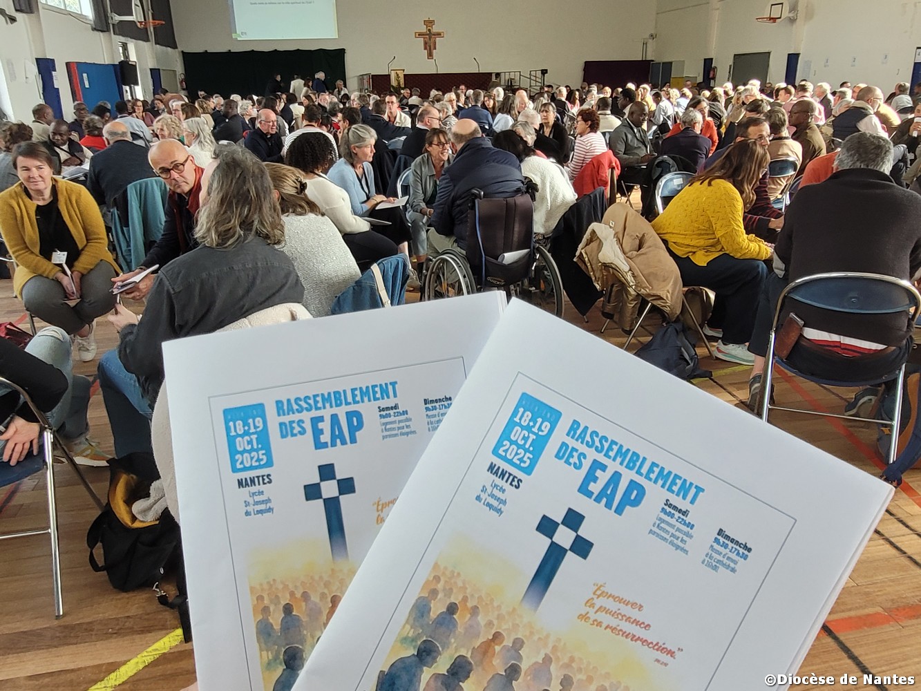 Les 18 et 19 octobre 2025, une rencontre avait lieu au lycée Saint-Joseph du Loquidy, à Nantes, réunissant 360 membres des Équipes d’Animation Pastorale des paroisses du diocèse accompagnés de leur curé. Deux jours de formation, préparés avec le cabinet en conseil Vivendo, ont mêlé ateliers, partages, célébrations et moments conviviaux. Chacun a pu ainsi mesurer la beauté d’une Église qui apprend à marcher ensemble, à se former pour mieux servir.