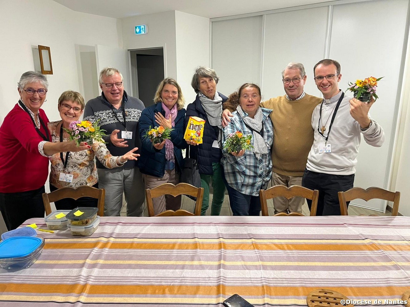 Père Olivier Dejoie, curé des paroisses de Saint-Père-en-Retz et Saint-Vital-en-Retz, accompagné de membres de son EAP, dont Marie-Bernard qui fait partie de l’ancienne équipe et assure un temps de transition.