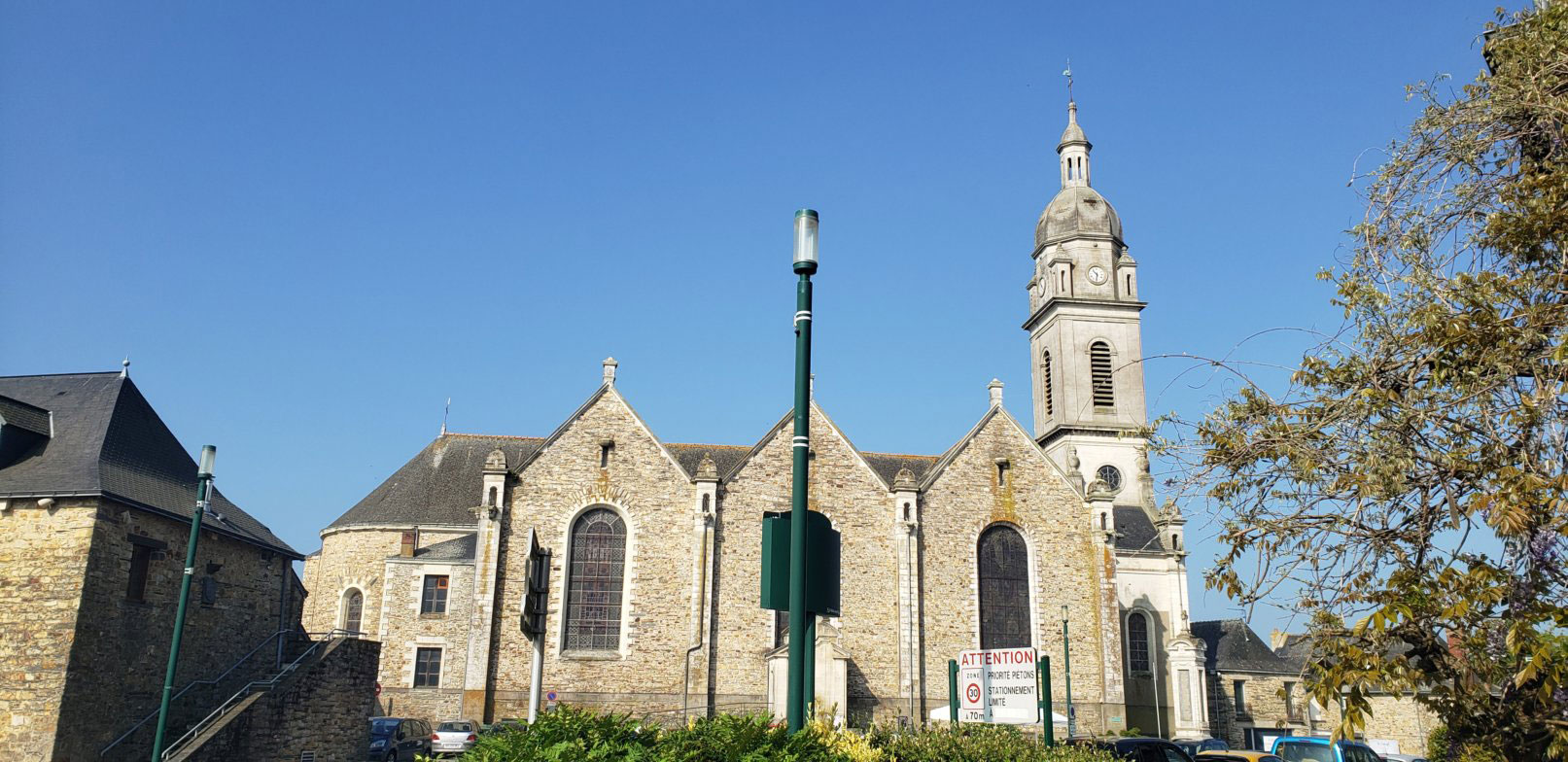 Après avoir fait un tour de table pour échanger, l’équipe du Tromée nous guida vers la très belle église de ce lieu où Madame Danielle Rouinsard Lalloué, passionnée d’histoire, nous accueillit « cette église a été construite à l’emplacement de l’ancien monastère édifié en 864. On ne sait pas quand il a été détruit, l’église, quant à elle date de 1062. À l’époque, elle avait une tour qui servait de protection aux habitants en cas d’invasion. Elle a été rebaptisée plusieurs fois au fil des siècles. En 1062, les moines de Redon lui donnent le nom de leur abbaye, Saint-Sauveur. Depuis 1829, elle porte le nom de Notre-Dame-de-L’Assomption».