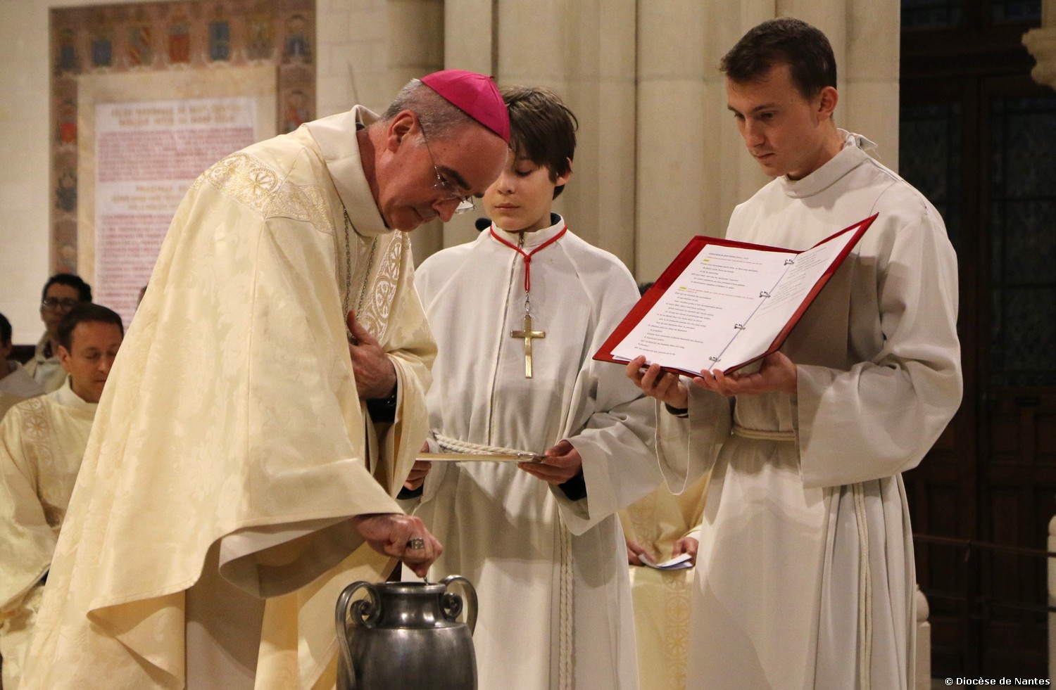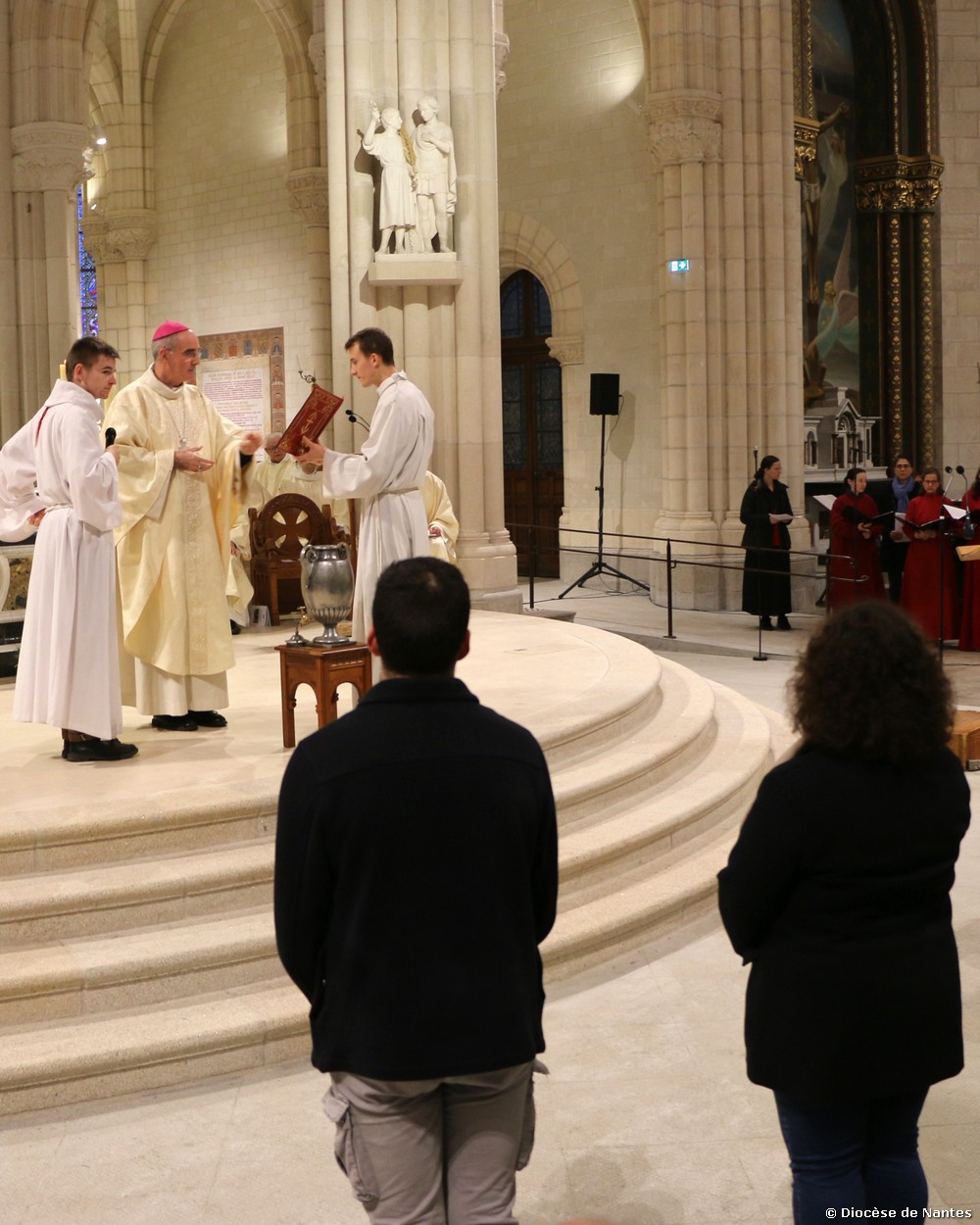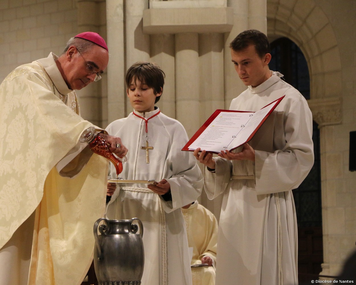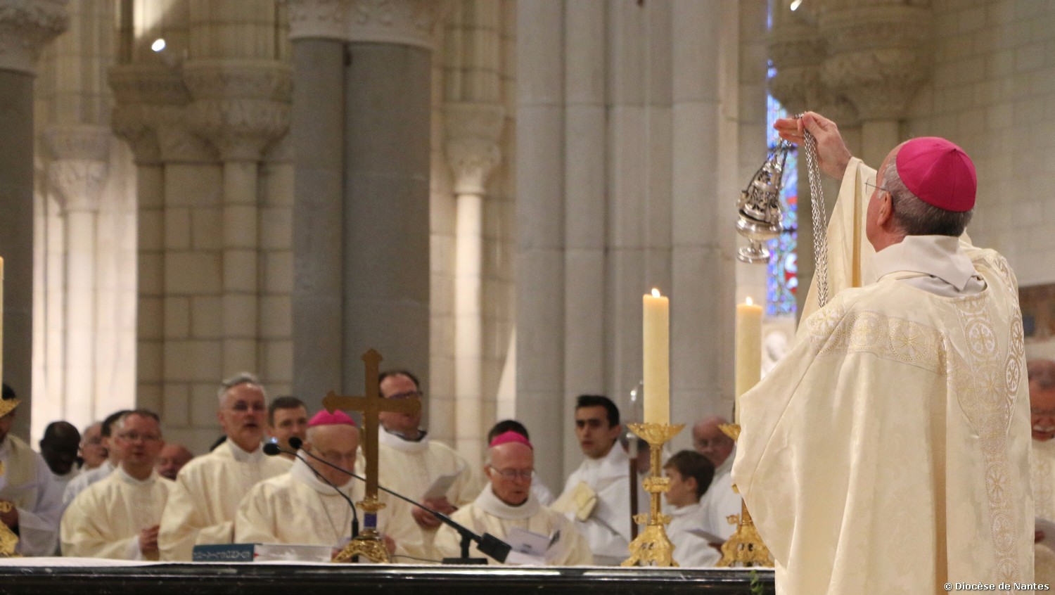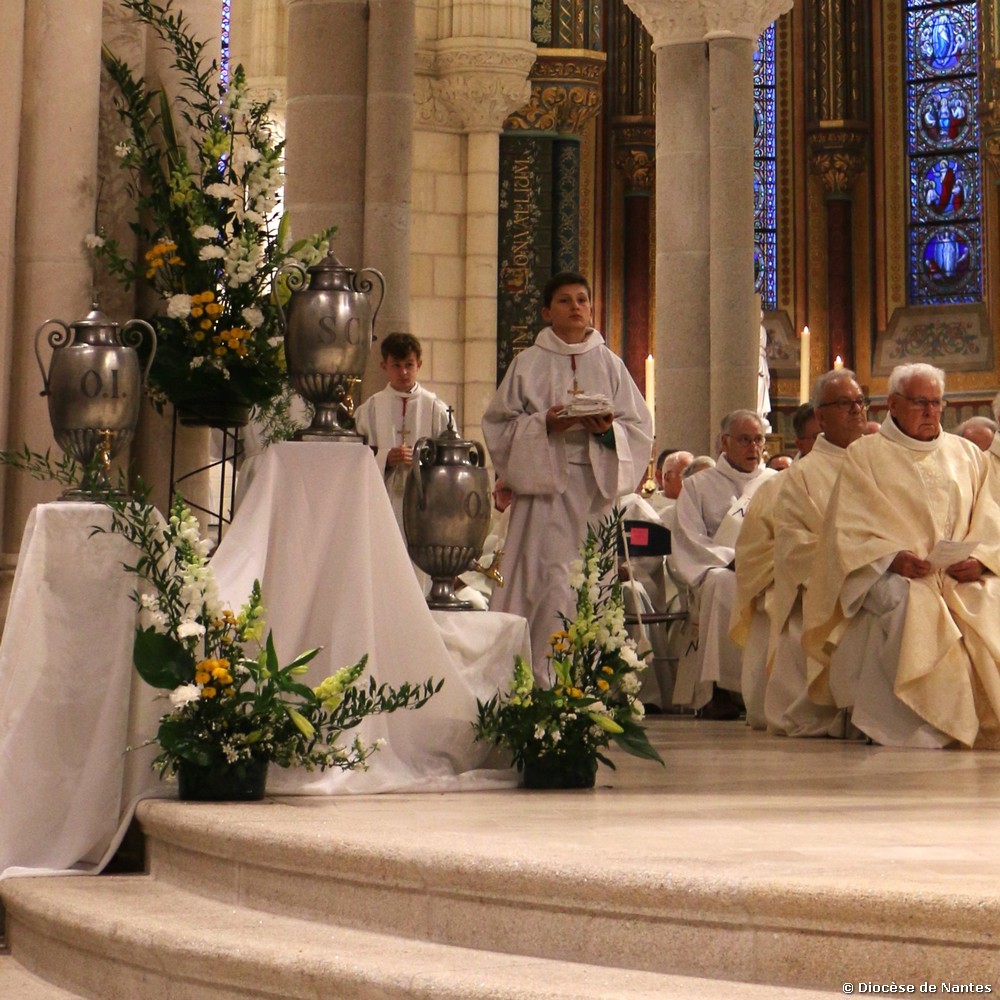 La messe chrismale a rassemblé un grand nombre de fidèles à 18h30 à la Basilique Saint Donatien et Rogatien. Les personnes ayant travaillées aux chantiers diocésains en vue des orientations, ainsi que les futurs baptisés et confirmés de Pâques, avaient été particulièrement invités à cette célébration.