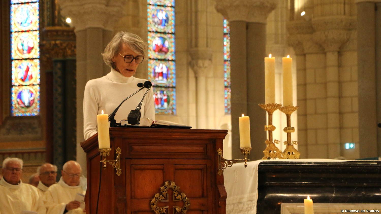 Dans l’après-midi, le père Michel Leroy a proposé un temps d’information sur l’avancement des travaux à la cathédrale. Mme Anne-Marie Chepeau-Malhaire, ingénieure du patrimoine à la Direction régionale des affaires culturelles (DRAC) des Pays de la Loire était la principale intervenante de ce temps, entourée de Michel Bourcier, l’un des organistes titulaires de la cathédrale, Mathilde Finot, membre du groupe de travail « itinéraire » et le père Félix Mignet, pour ce qui est de la verrière.