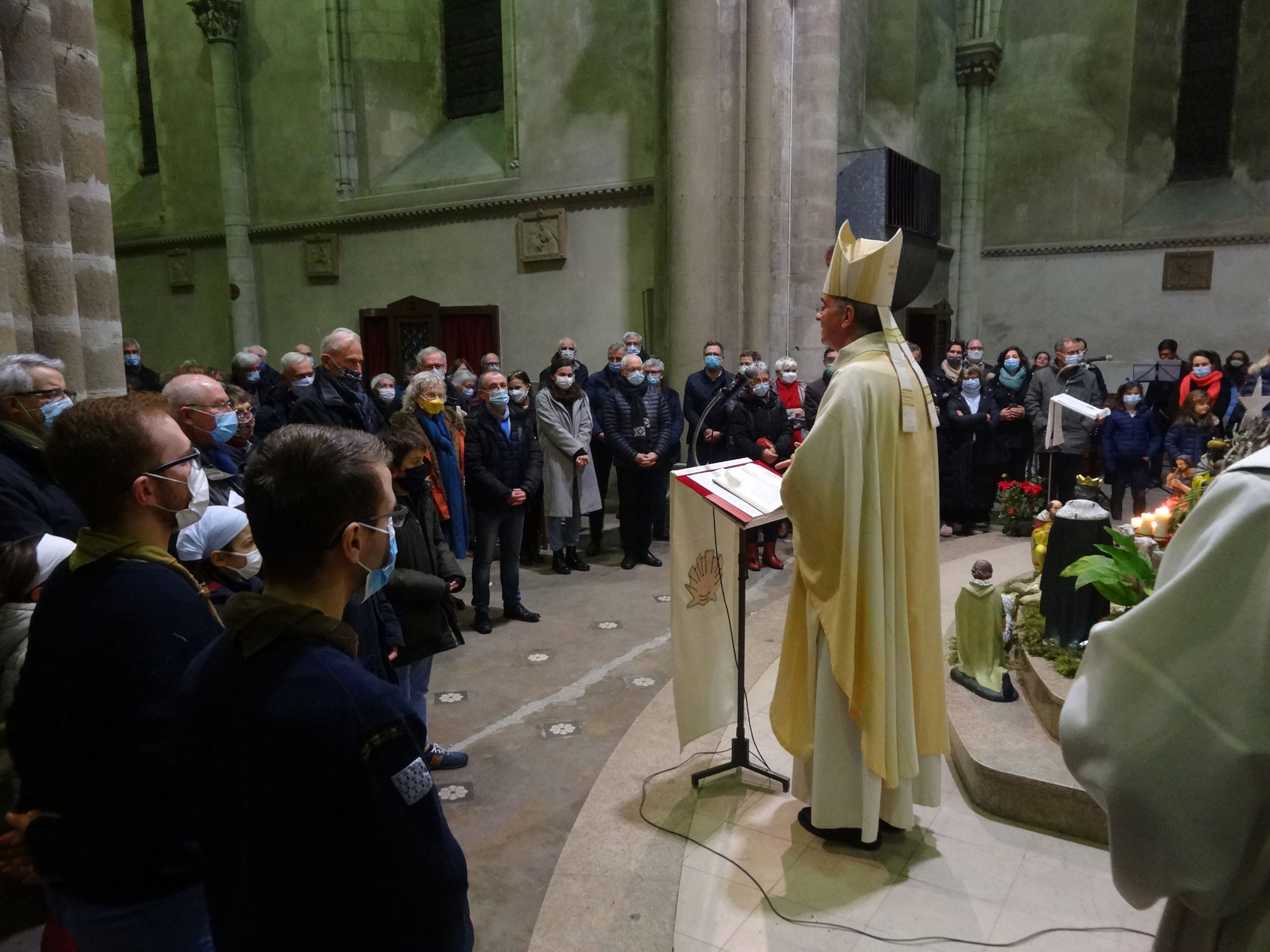 Une centaine de personnes a participé samedi 9 janvier 2021 à la messe célébrée en l’église Saint-Jacques de Nantes, à l’occasion de l’ouverture de l’année jacquaire (année particulièrement solennelle pour le sanctuaire de Saint-Jacques-de-Compostelle et tous les marcheurs et pèlerins).