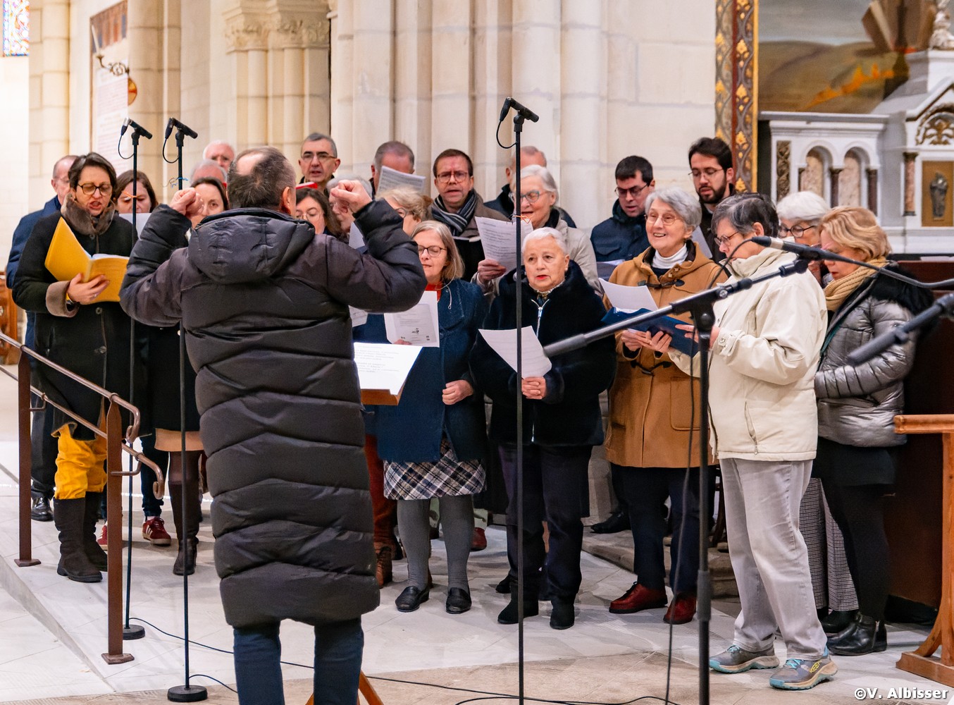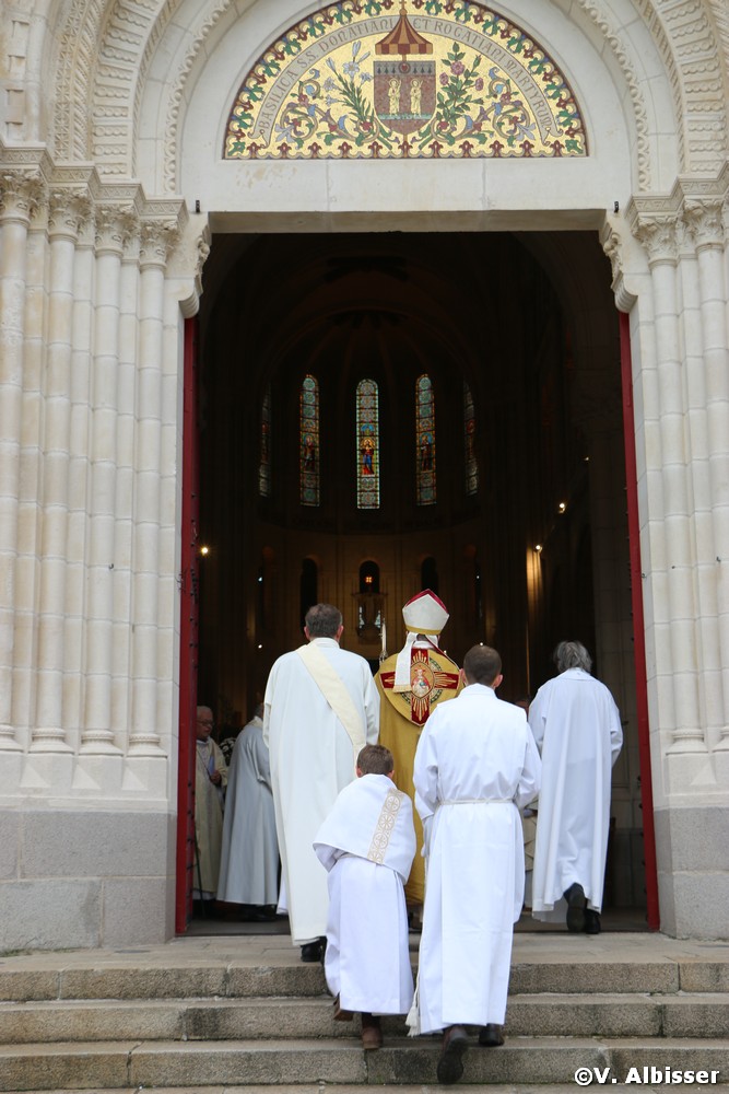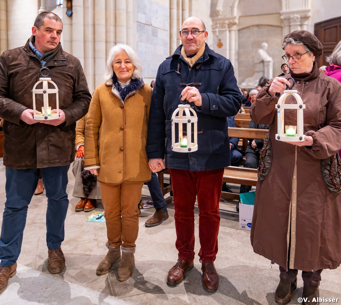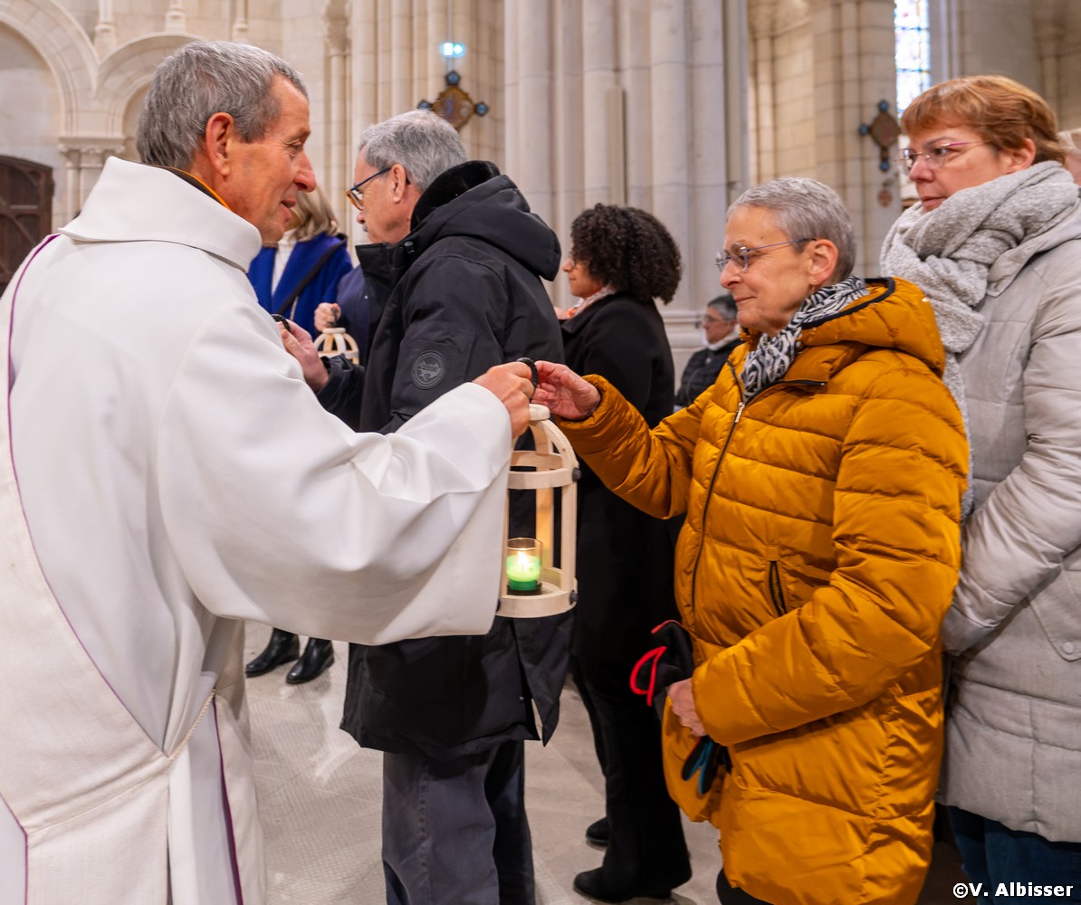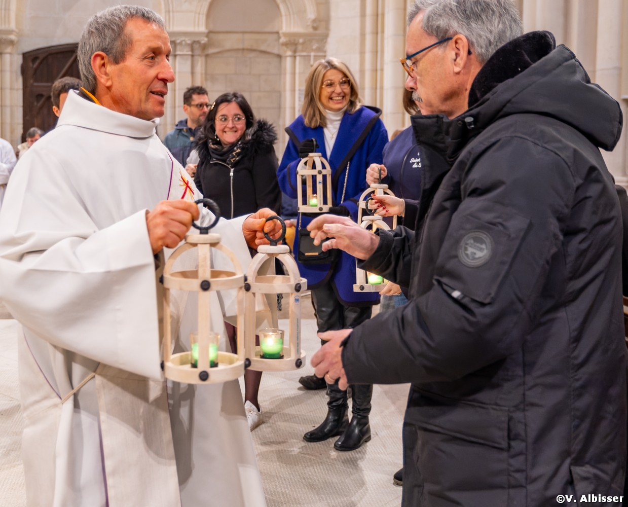 A 10h30, ce dimanche 29 décembre 2024, une procession est partie de la rue Dufour, au pied des calvaires jumeaux du martyre des saints Donatien et Rogatien, pour se rendre à la basilique située à quelques centaines de mètres de là. Sur les marches de la basilique, Monseigneur Percerou a introduit cette célébration solennelle à laquelle participaient des délégations de chaque paroisse du diocèse. Elles ont reçu une lanterne, symbole de la lumière qui éclairera cette année jubilaire à travers la Loire-Atlantique.
