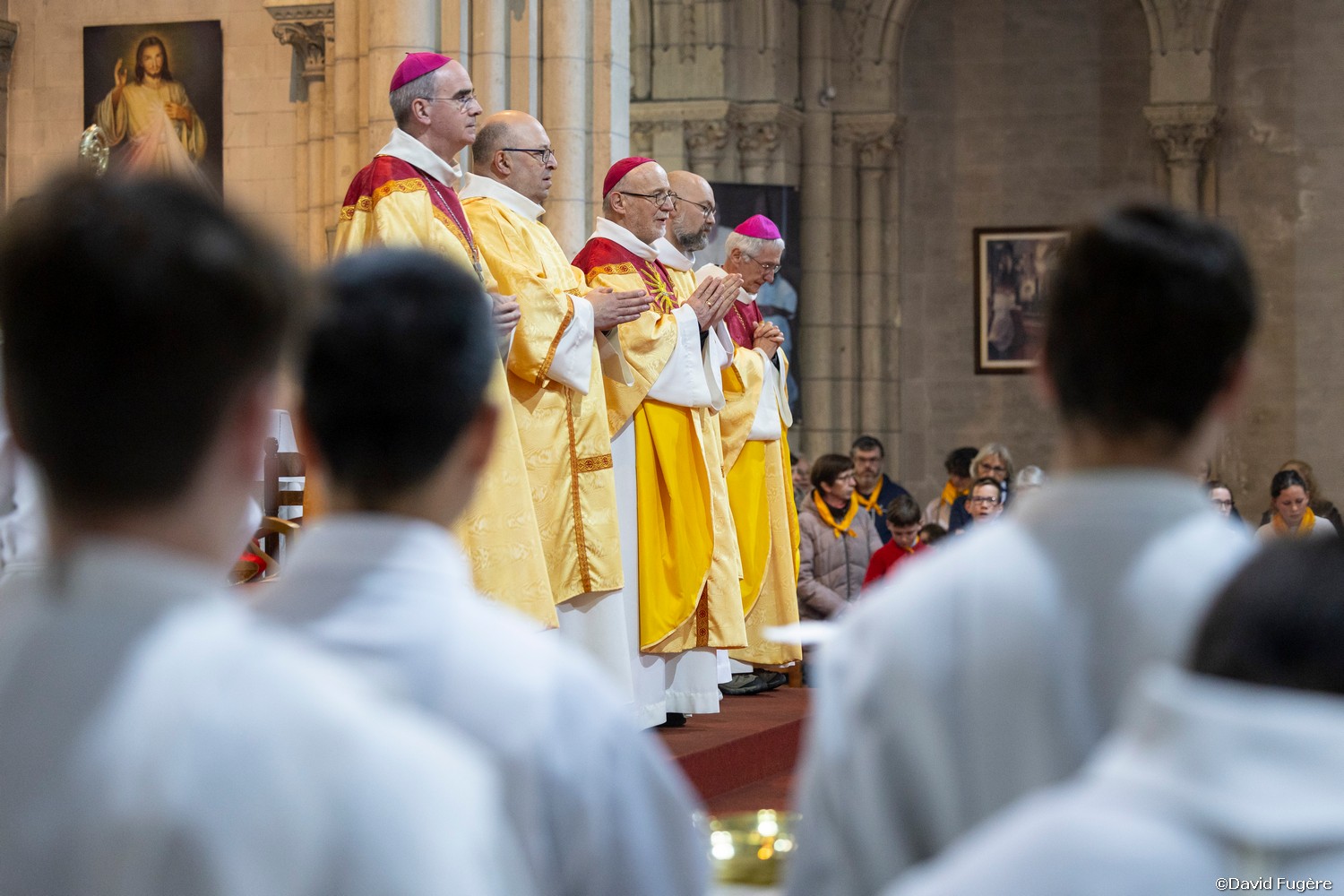 Mgr Jacolin, évêque de Luçon, a ensuite présidé la messe d’action de grâce pour les vocations particulières à l’œuvre dans nos diocèses. Dans l’homélie, Mgr Percerou a invité chacun à ne jamais cesser de demander au Seigneur qu’il envoie des ouvriers à sa vignes, à ne jamais hésiter non plus, à proposer une vocation particulière à une personne dont on perçoit une belle vie intérieure, un engagement et un amour de l’Eglise particulier. Proposer de réfléchir à la vocation sacerdotale ou religieuse, ce n’est pas mettre la main sur une personne c’est au contraire lui permettre d’exercer sa belle liberté d’enfant de Dieu, de réfléchir sérieusement à ce qu’il veut faire de sa vie, car la réponse lui appartient !