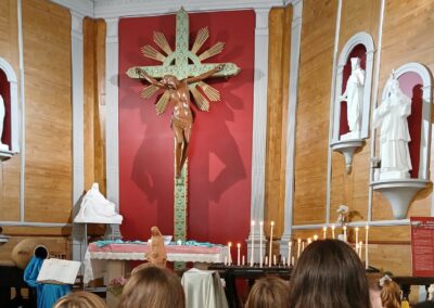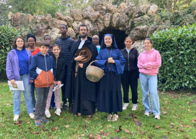 Accueillis par Sœur Christine, Père Eric, Père Santino et Frère Ernest de la communauté montfortaine, ce fut un très beau moment de convivialité et de prière. « À Jésus par Marie » (devise des Montfortains).