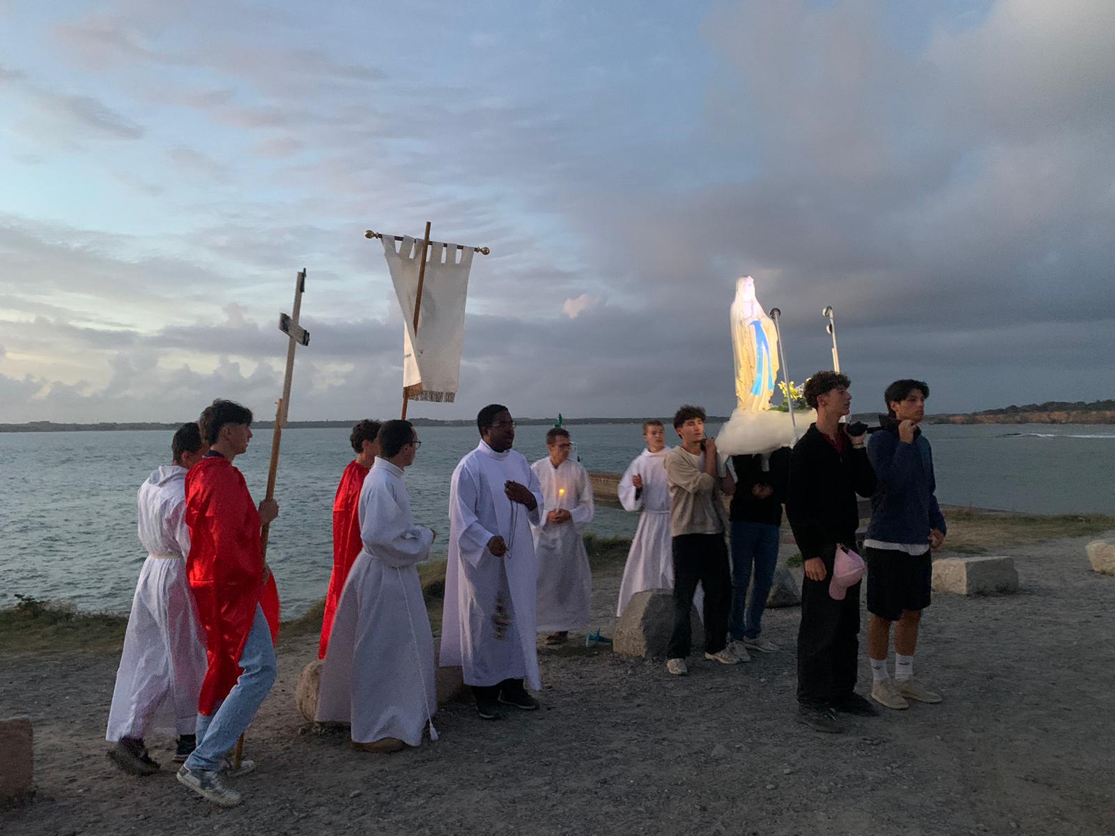 « Je vais entrer au séminaire d’ici quelques jours, j’ai encadré ce groupe et partagé des conversations avec ces jeunes, heureux de pouvoir échanger. Nous avons fait une procession mariale sur la côte, en lien avec une paroisse et j’ai été très heureux de rejoindre ainsi des paroissiens, des estivants, d’ouvrir notre groupe de cette manière et les jeunes ont beaucoup appréciés ». Félix, 22 ans, de Pornic.