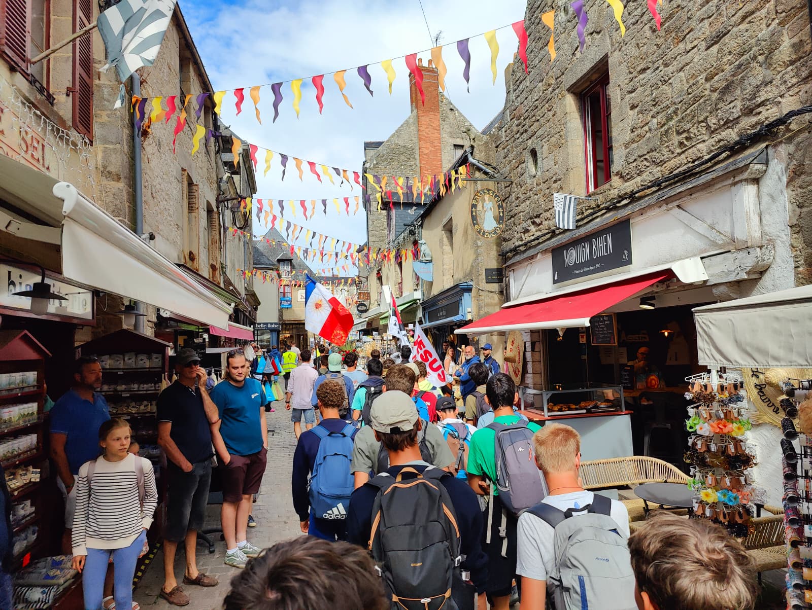 « Ça a été quatre jours de prière, de marche et de fraternité avec une vingtaine de jeunes. Une belle ambiance avec des jeunes qui ont soif d’en savoir plus sur le Seigneur et d’en témoigner. Le moment qui m’a le plus marqué ça a été notre arrivée en procession à la collégiale de Guérande, il y avait une belle ferveur et des chants qui portaient la prière des jeunes » Louise, 23 ans membre de la logistique de ce camp.