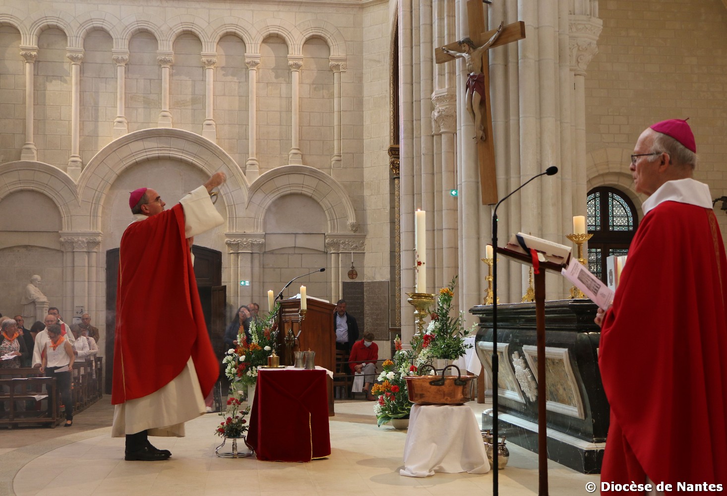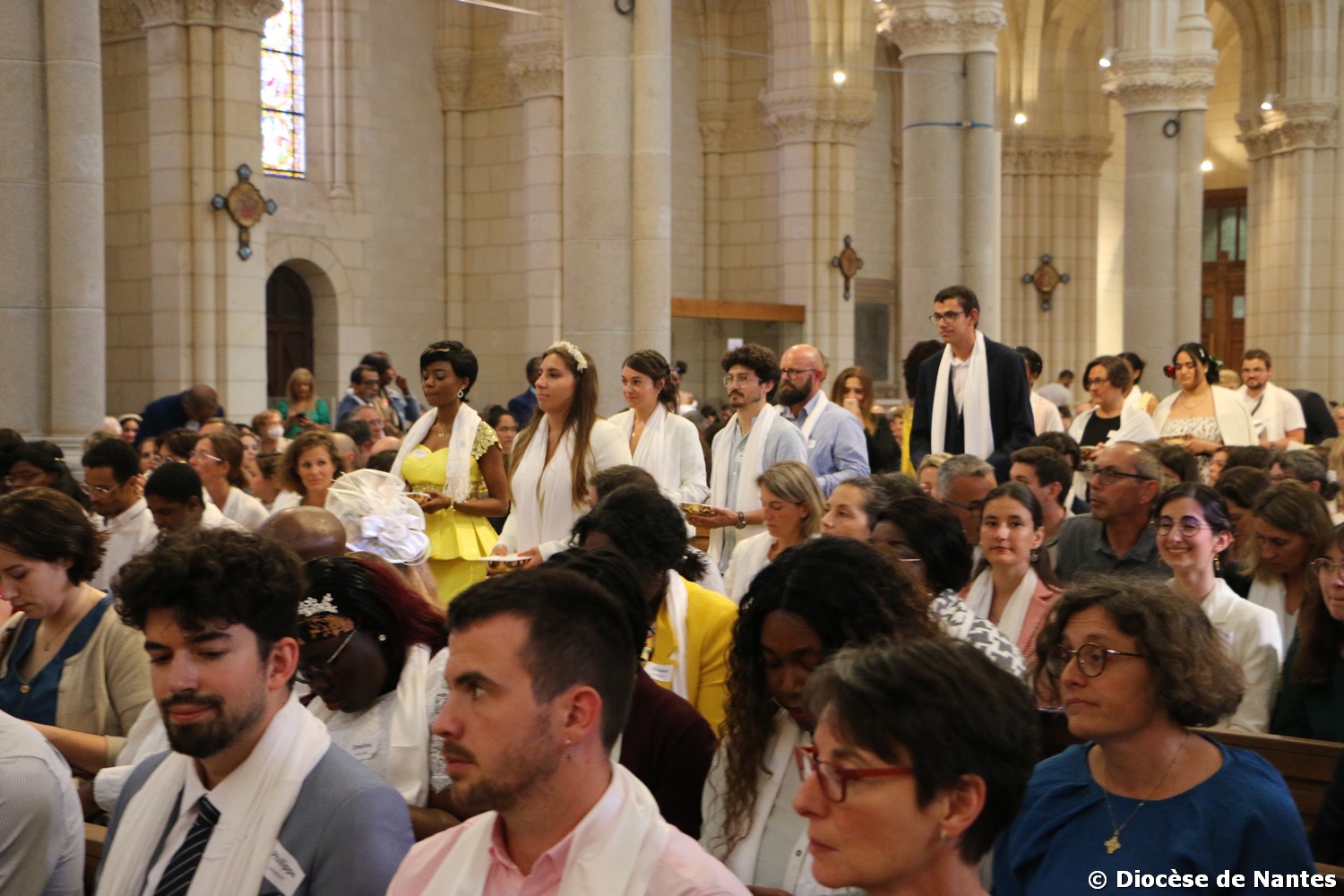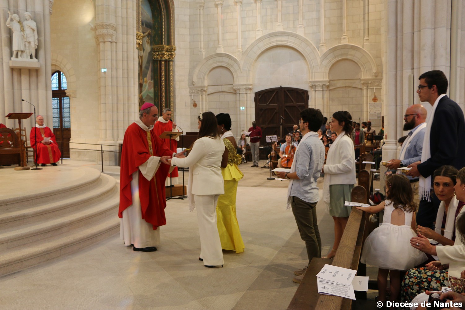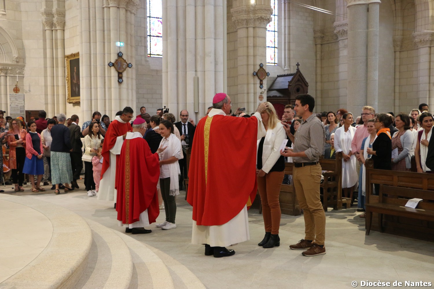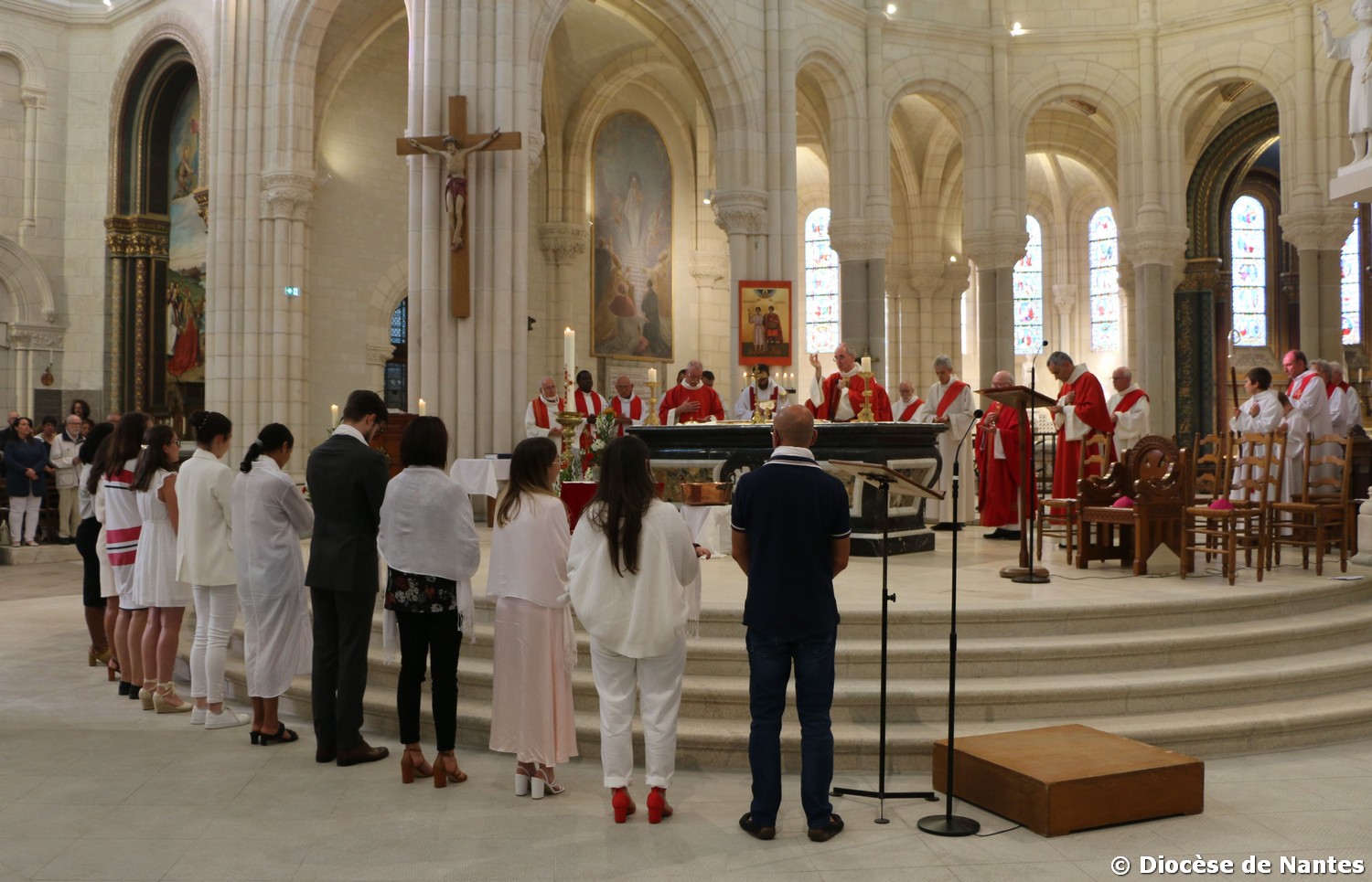 Samedi 4 juin 2022, en la basilique saint Donatien de Nantes, Mgr Laurent Percerou, évêque de Nantes, assisté de Mgr Bernard Charrier, évêque émérite de Tulle, et des pères François Renaud et Sébastien de Groulard, vicaires généraux, ont confirmé 77 adultes. 73 autres avaient déjà reçu le sacrement à Pâques en même temps que le baptême et l’eucharistie, les trois sacrements de l’initiation chrétienne. Cette année, ce sont ainsi 150 adultes qui auront été confirmés dans le diocèse de Nantes.
