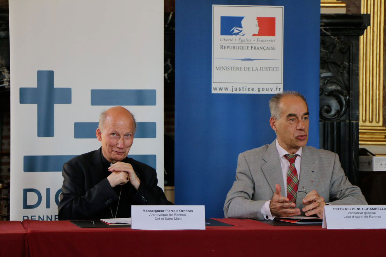 Frédéric Benet-Chambellan, procureur général près la cour d’appel de Rennes, explique tout l’intérêt de ce protocole qui facilitera le recueil de la parole. Il est interrogé par Yann Béguin, responsable du service communication du diocèse de Rennes