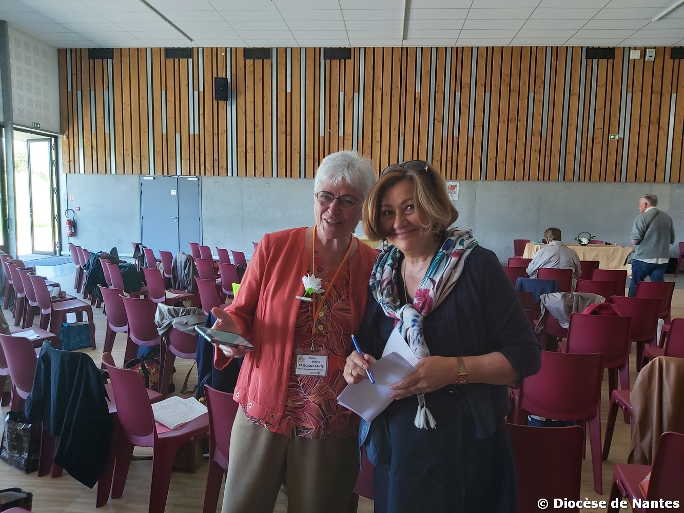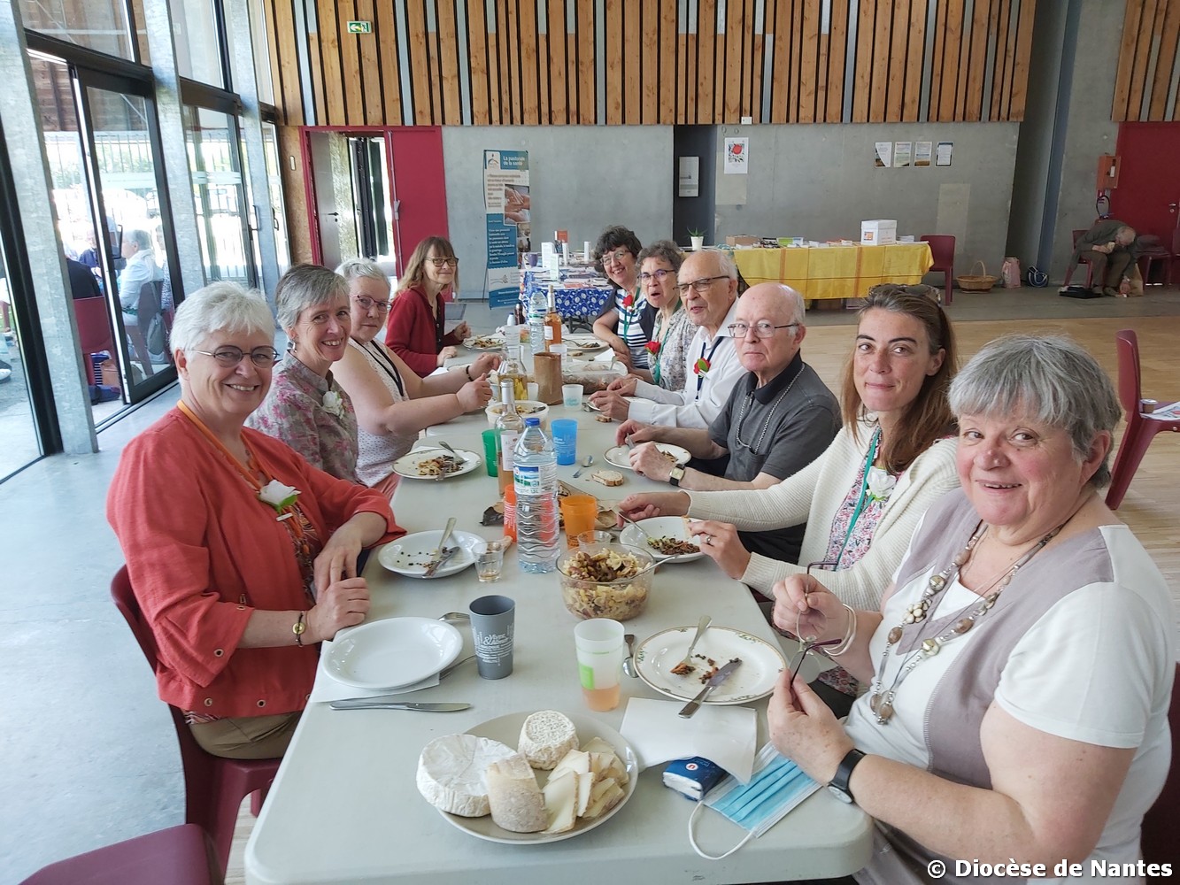 Le rassemblement annuel réunit des personnes engagées au sein de la Pastorale Santé : aumôniers dans les établissements de santé (hôpital et clinique) ; responsables d’équipe dans les EHPAD et du réseau de la Pastorale de la Personne en situation d’handicap ; prêtres et diacres, religieuses, bénévoles et représentants des mouvements (Amitié Espérance, Chemin d’Espoir, Foi et Lumière, Relais Lumière Espérance, Lourdes Cancer Espérance, Pèlerins de l’Eau Vive…). La rencontre organisée par le service diocésain dans la journée du mardi 10 mai 2022, a rassemblé plus de 300 personnes. Des quatre coins du diocèse, elles ont convergé vers la salle Horizinc située à Bouvron (paroisse Notre-Dame-de-la-Paix-sur-Isac).