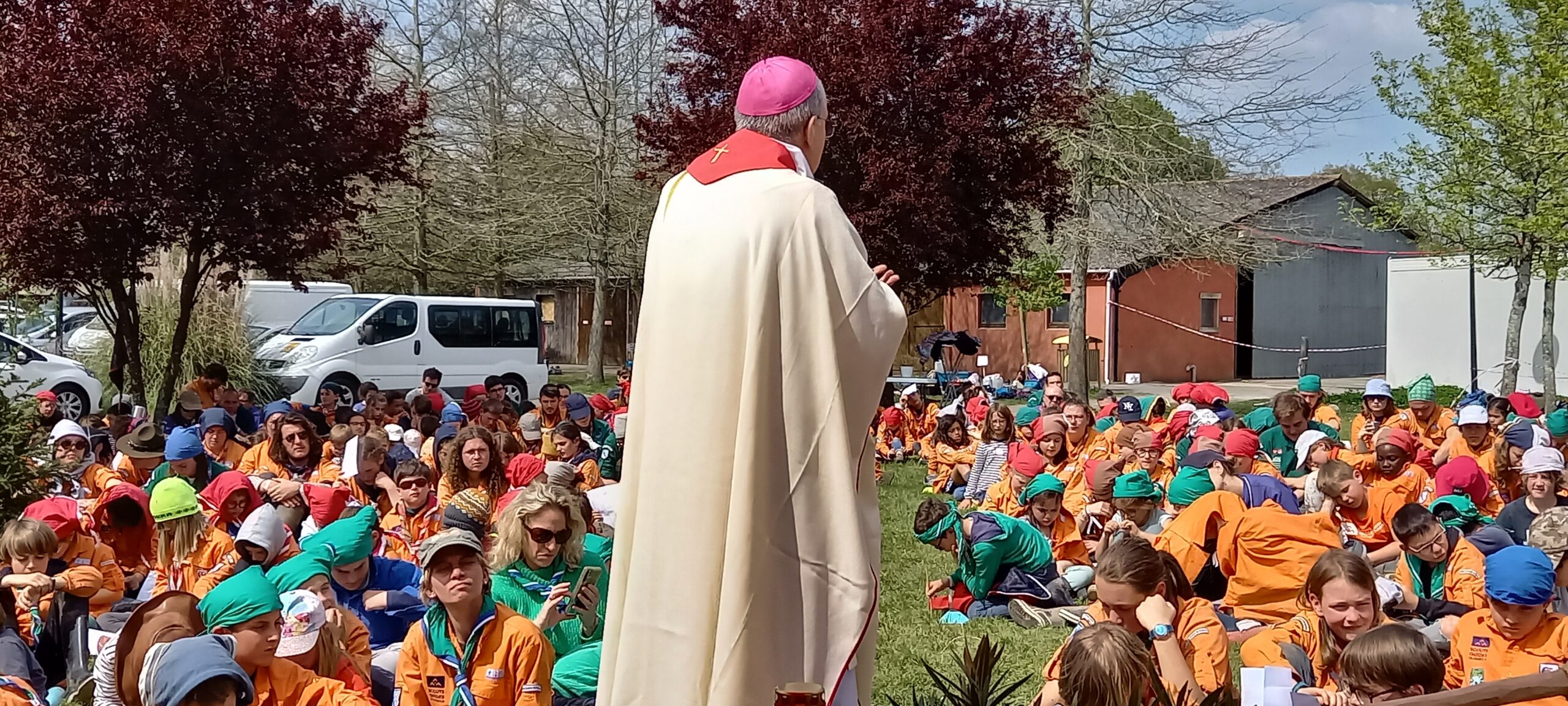 Le camp sous tente a régalé les 400 enfants et leurs animateurs : les pieds dans la gadoue et la tête au soleil ils ont chantés la Création et se sont émerveillés sur la fécondité de la nature. Mgr Percerou a conclu le week-end par la célébration eucharistique.