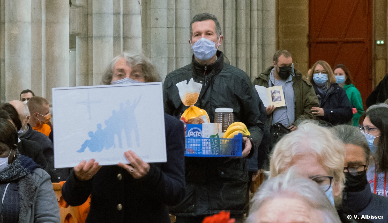 Ce dimanche 14 novembre 2021 avait lieu la 5ème Journée Mondiale des Pauvres, à l’initiative du pape François. Le Service de la Solidarité du diocèse, plusieurs associations et le Pôle Solidarité de la paroisse Notre-Dame de Nantes organisaient un évènement convivial, avec une messe à la basilique Saint-Nicolas, suivie d’un repas à la salle paroissiale.