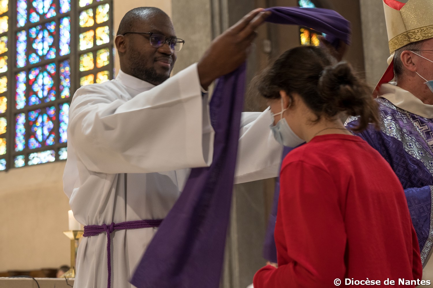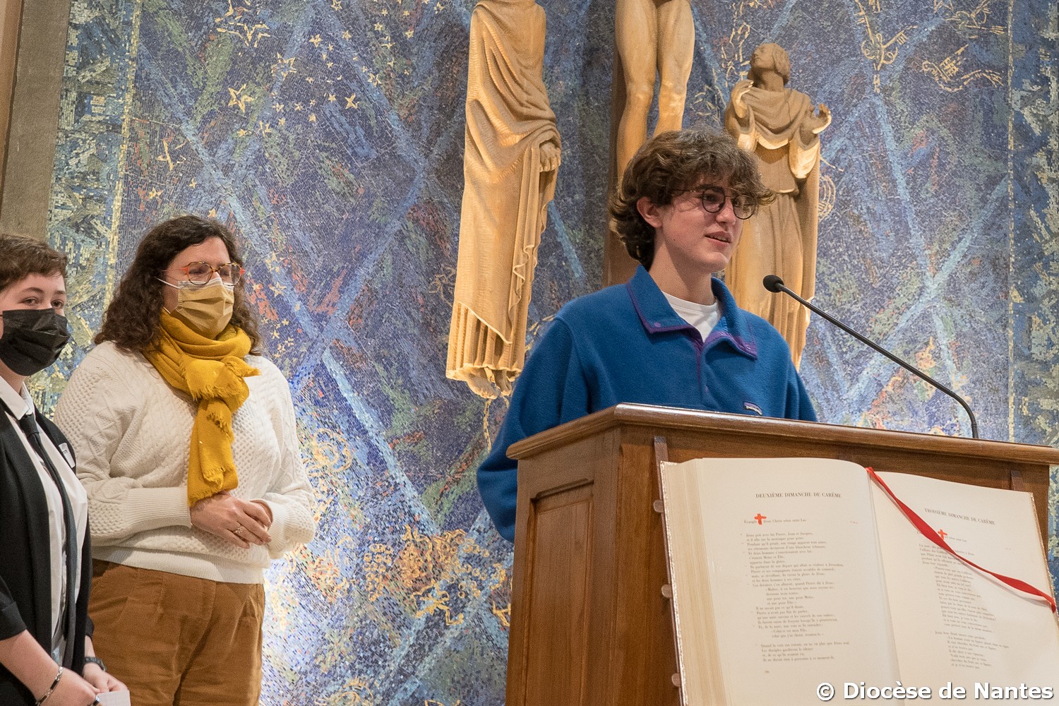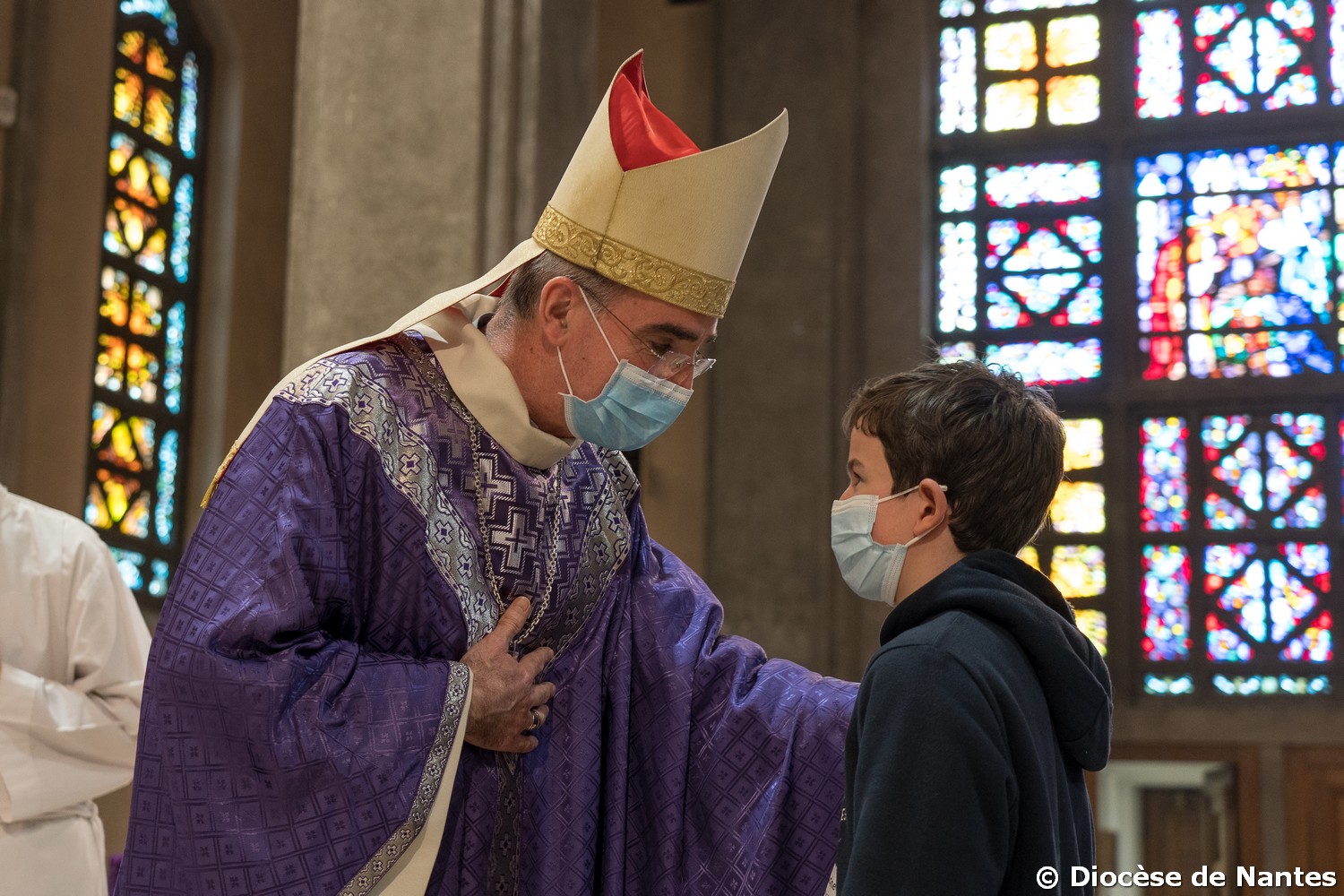 Au cours de la célébration, chaque jeune a été appelé par son prénom par notre évêque, Mgr Percerou, puis s’est avancé pour un temps de dialogue avec lui. Revêtus d’une écharpe violette, ils ont signé le registre qui sera confié à la prière des Clarisses de Nantes. Leur baptême sera célébré dans les paroisses à Pâques ou dans le temps pascal.