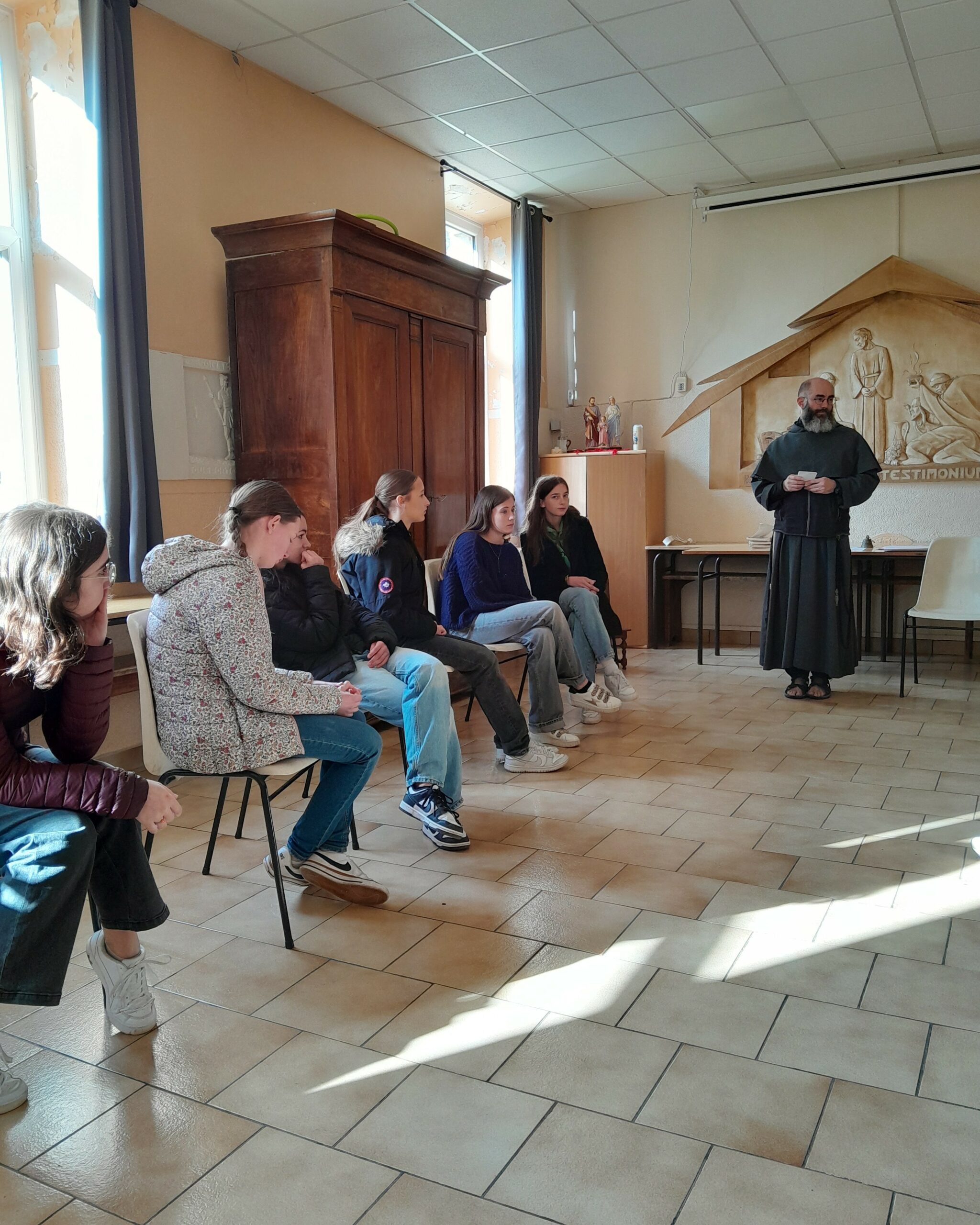 Samedi 1er mars 2025 avait lieu la retraite de confirmation à Cholet, de l’Aumônerie de l’Enseignement Public de Nantes centre : Les jeunes ont vécu une belle journée rythmée par les temps de prière à la chapelle, les enseignements et les jeux. La journée s’est terminée par une belle veillée animée par les franciscains.