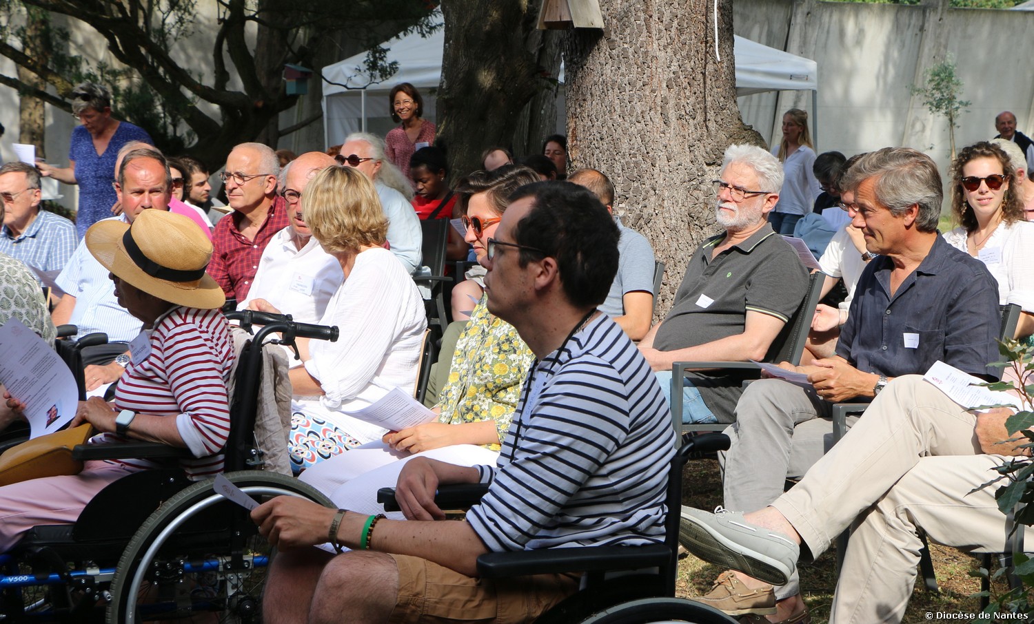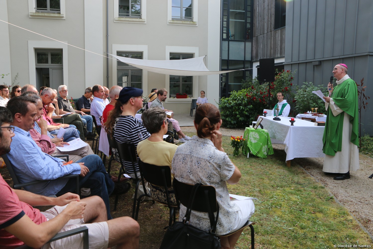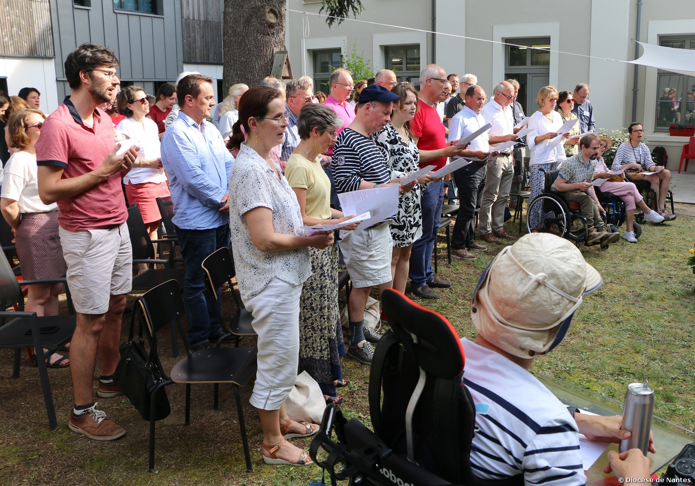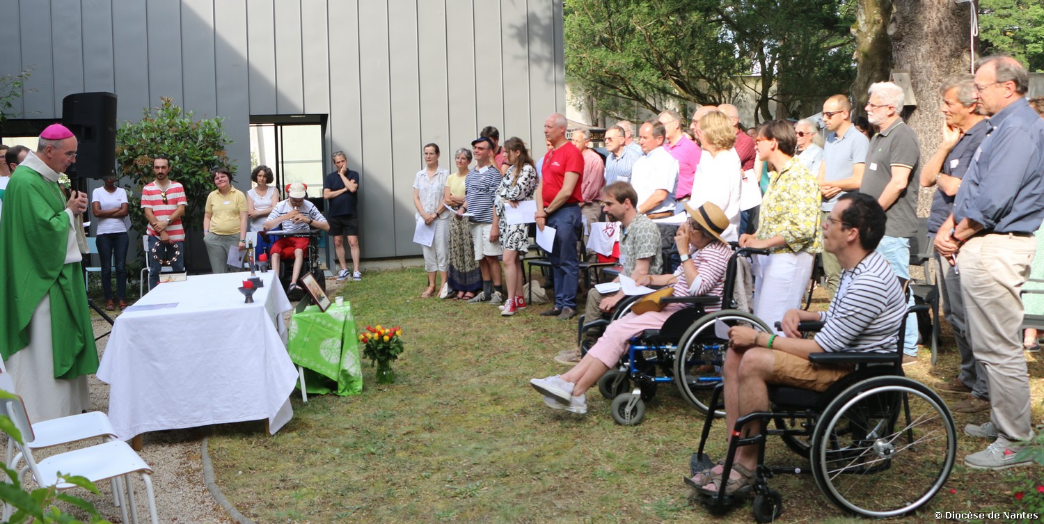 Après un temps d’échange sur la dimension spirituelle de l’animation des Maisons, Mgr Laurent Percerou accompagné du père Emmanuel Mustière, curé de la paroisse Saint-Jacques-Saint-Jean-Sainte-Famille sur laquelle sont situées les trois maisons nantaises, Laurent de Cherisey et les directeurs ont rejoint les communautés pour une célébration eucharistique. Celle-ci a été l’occasion de rendre un hommage particulier à Philippe Pozzo Di Borgo (à l’origine du film « Intouchable » et très proche de la communauté nantaise), décédé quelques jours auparavant, et d’envoyer en mission le petit groupe qui partira aux JMJ avec la paroisse.