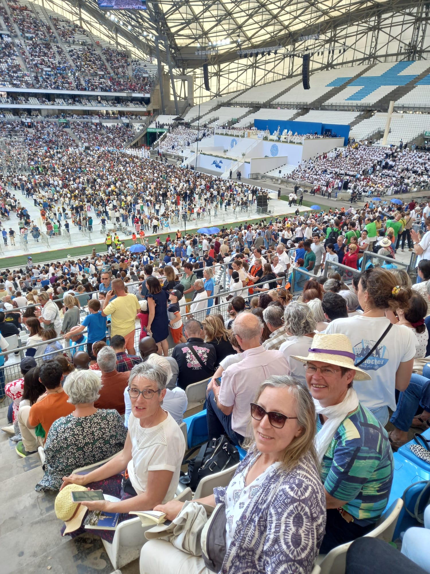 Je ne saurais vous décrire l’ambiance de liesse de cette assemblée, ni rendre compte de toute l’implication des équipes d’organisation et d’animation. Je retiens les chants et les acclamations d’une seule voix de ces dizaines de milliers de personnes, et l’élan du Saint-Père se levant au début de la célébration. Et surtout, son homélie (https://www.vatican.va/content/francesco/fr/homilies/2023/documents/20230923-marsiglia-omelia-messa.html).