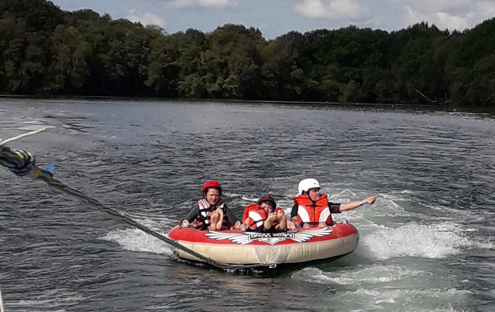 Cette journée, traditionnelle depuis une dizaine d’années, est constituée de navigation sur le plan d’eau dans un bateau adapté, de glissade sur une bouée tractée ou de ski nautique adaptée. En outre, des ateliers ludiques sont également proposés. Les invités des 2 foyers sont repartis avec de belles images pleins les yeux et avec un diplôme d’initiation aux sports nautiques, en se promettant de revenir l’an prochain.