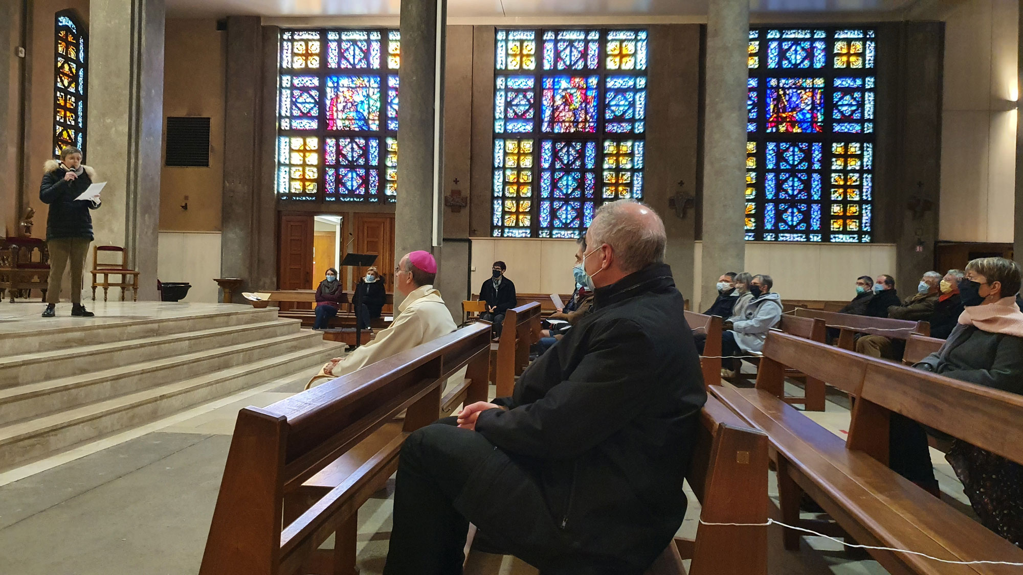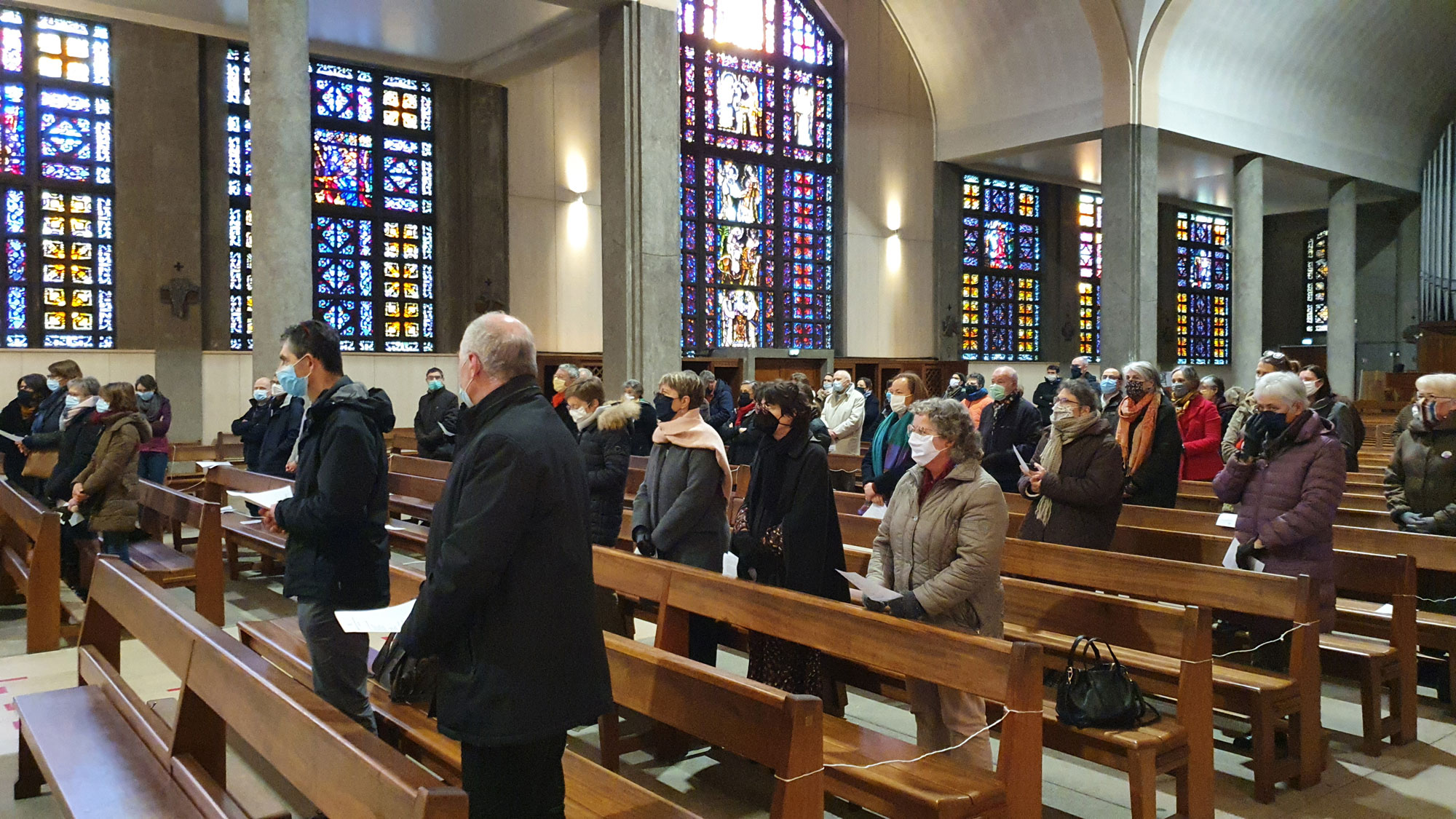 Vendredi 8 janvier 2021, les membres de la maison diocésaine Saint-Clair et du secrétariat général étaient rassemblés en l’église Saint-Félix de Nantes autour de Mgr Laurent Percerou pour une célébration des vœux, qu’il a ainsi conclue :